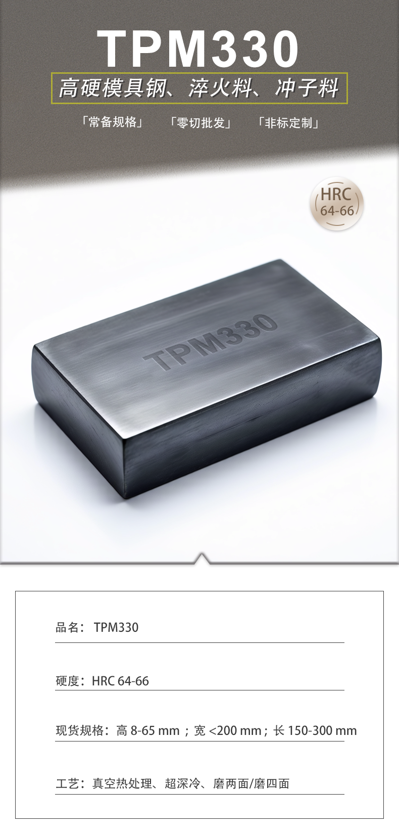 TPM330高硬模具钢淬火料冲子料冲头真空热处理料熟料HRC64-66
