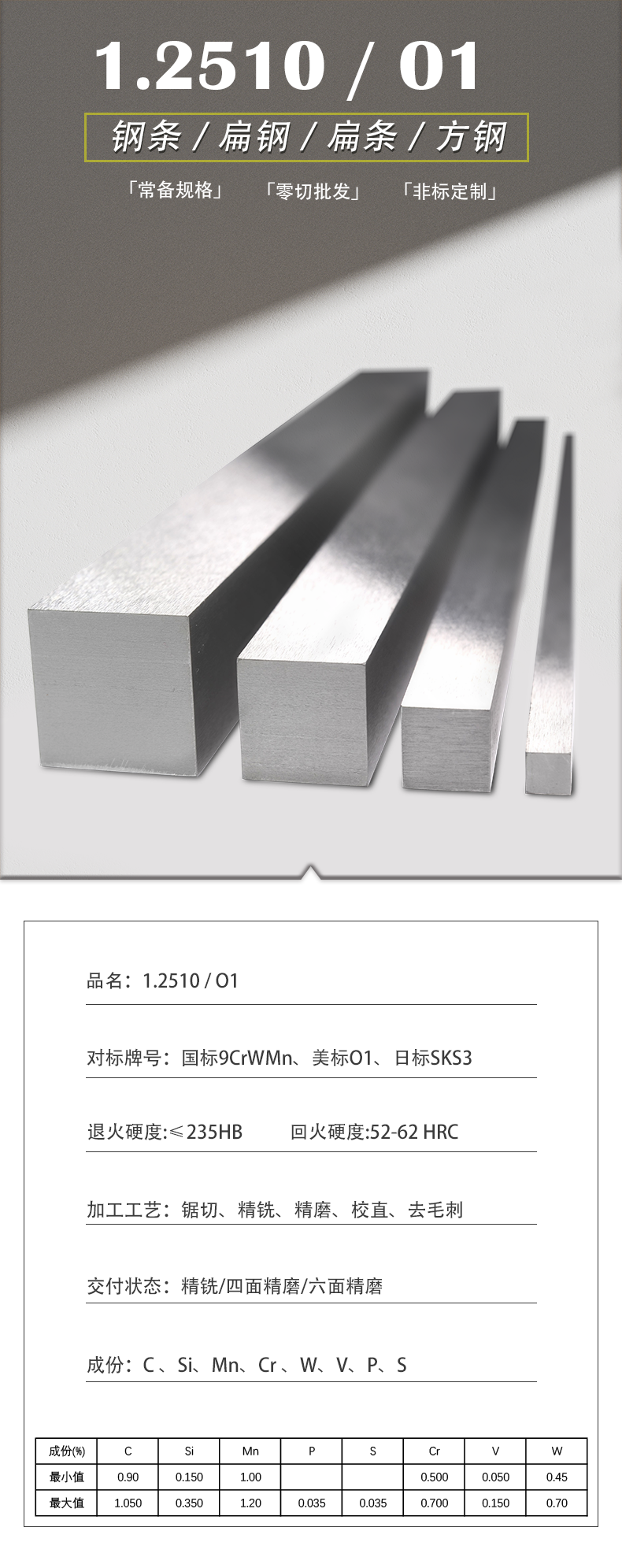 1.2510/O1精铣精磨白钢条小扁钢条方钢钢板加工定制
