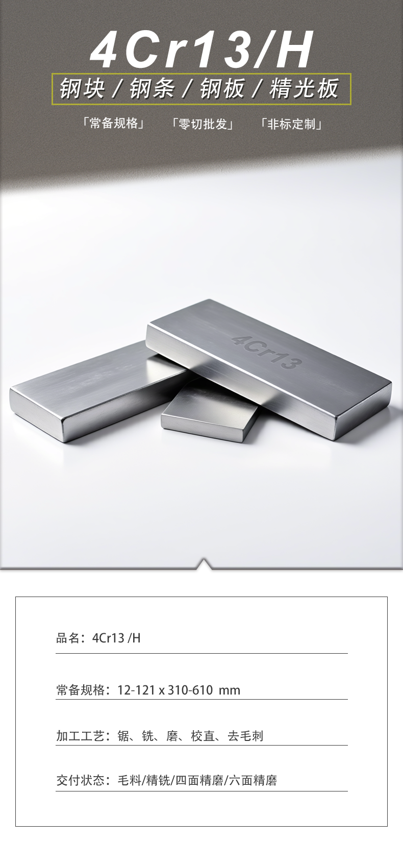 4Cr13R/H精铣精磨白钢条小扁钢条方钢钢板加工定制