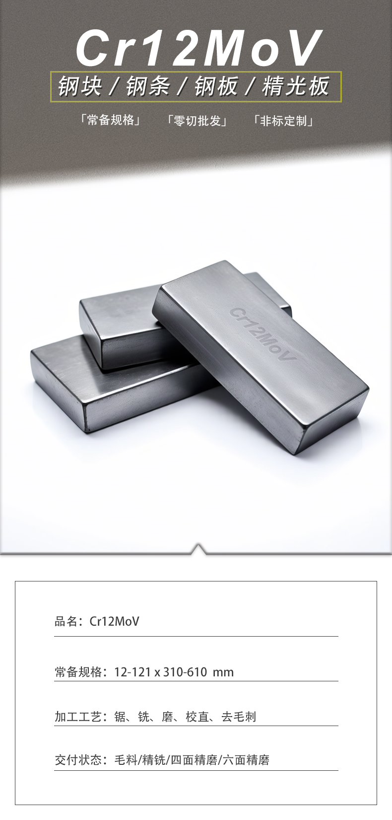 Cr12MoV精铣精磨白钢条小扁钢条方钢钢板加工定制