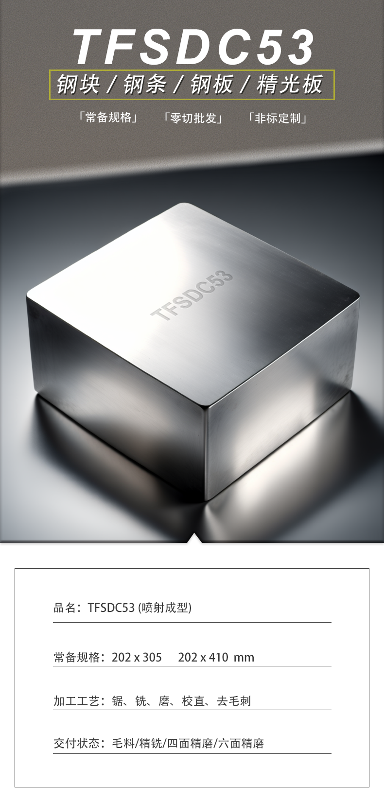 TFSDC53工具钢模具钢精铣精磨定制类冲压模块