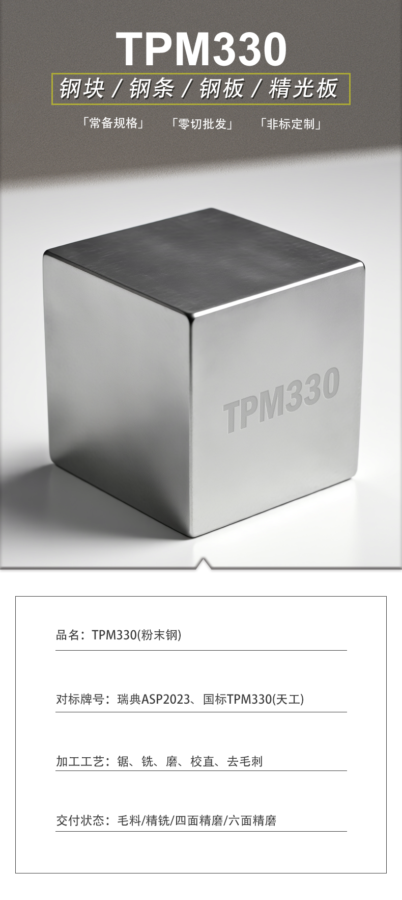 TPM330粉末钢高速钢工具钢精铣精磨定制