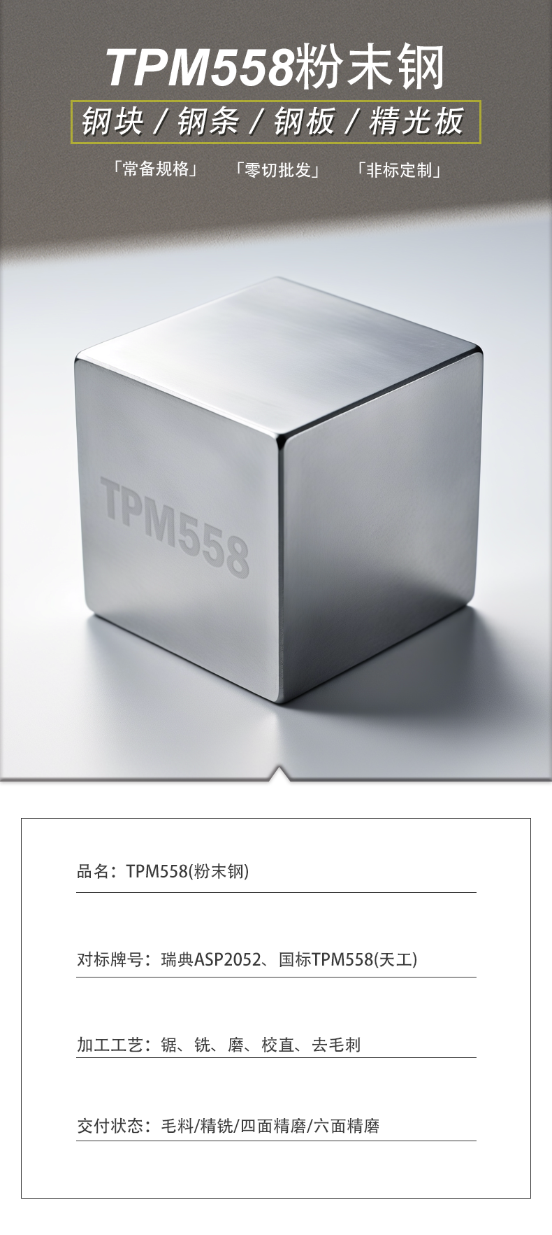 TPM558粉末钢高速钢工具钢精铣精磨定制