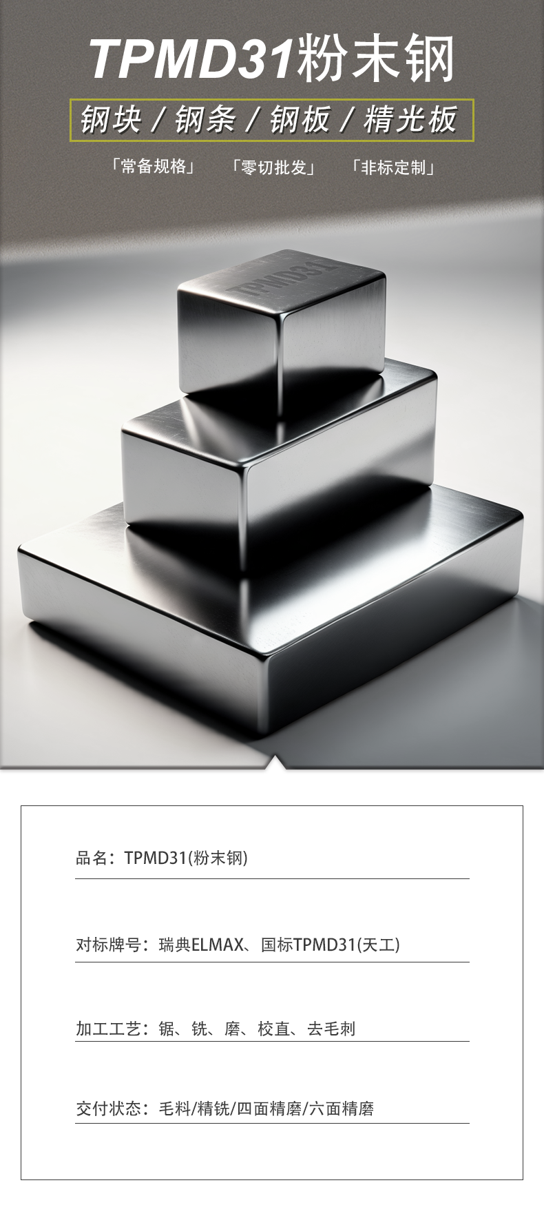 TPMD31粉末钢高速钢工具钢精铣精磨定制