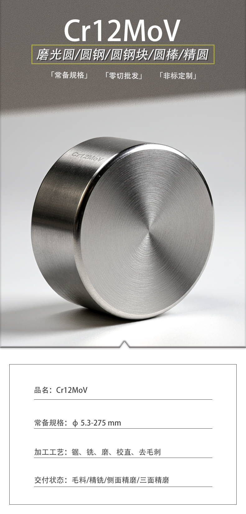Cr12MoV圆钢块圆棒精圆磨光圆模具钢工具钢精铣精磨定制
