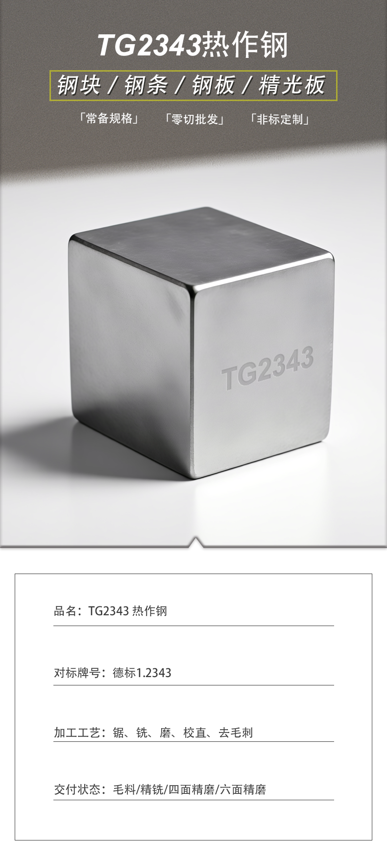 TG2343热作模具钢工具钢模块精铣精磨定制
