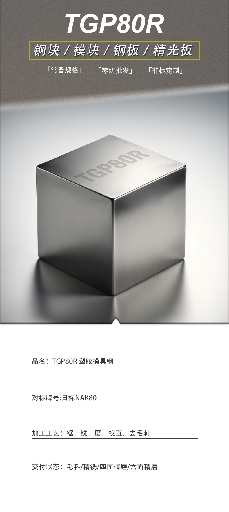 TGP80R塑胶模具钢塑料钢工具钢模块精铣精磨定制