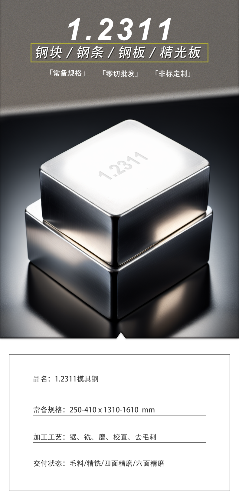 1.2311塑胶模具钢塑料钢工具钢模块精铣精磨定制