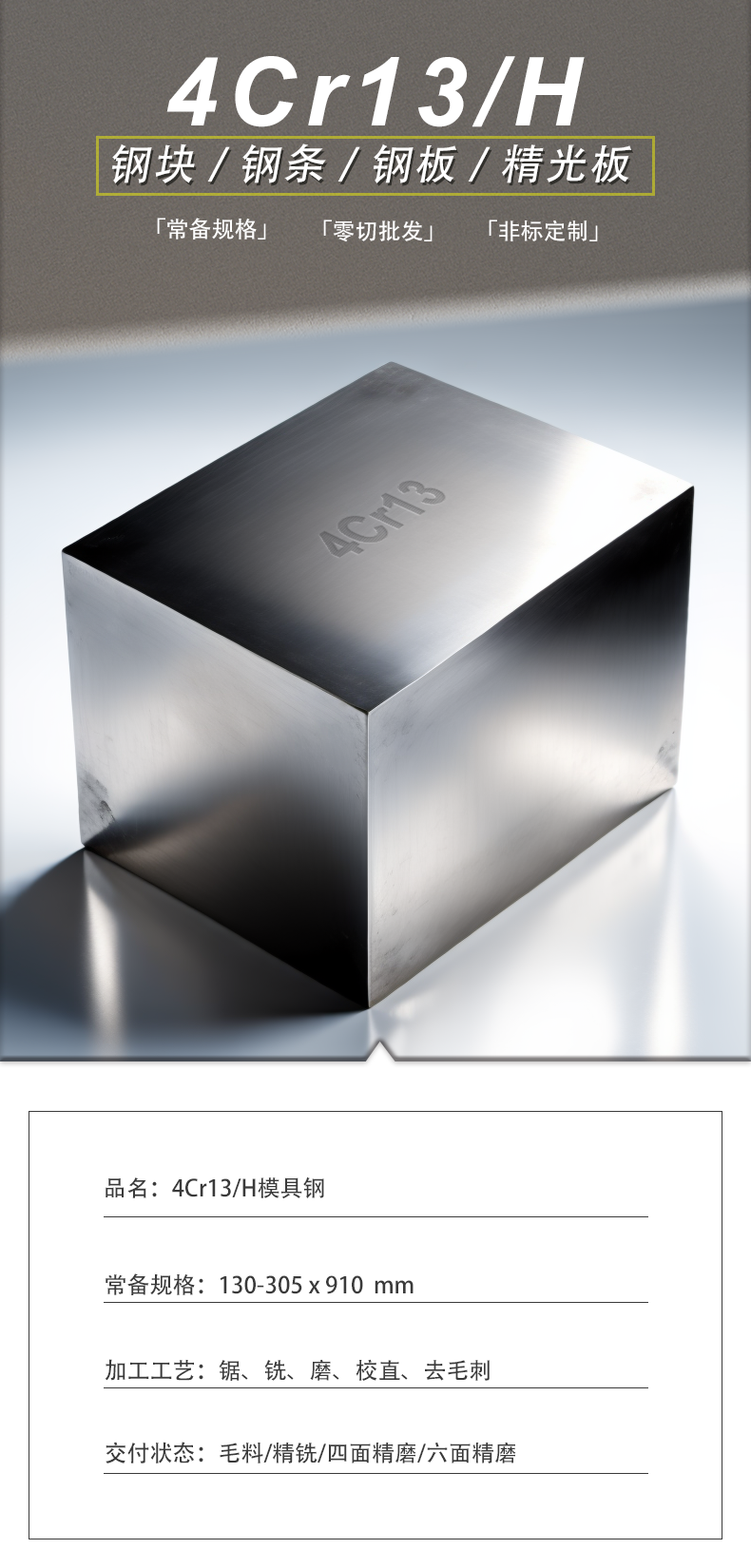 4Cr13/H塑胶模具钢塑料钢工具钢模块精铣精磨定制